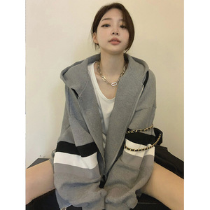 美式复古开衫卫衣外套女春秋2025新款秋冬休闲运动oversize棒球服