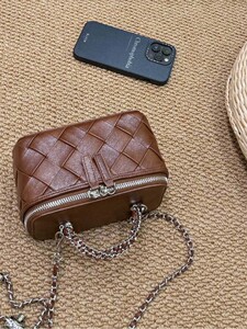 高级感编织盒子包时尚链条斜挎包2025新款小香风手拎小方包