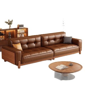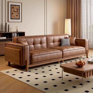 美式复古风中小型头层沙发双人轻奢胡桃木新中式直排沙发
