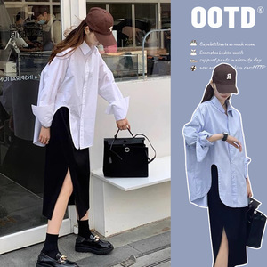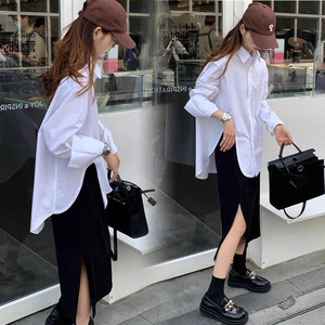 爆款孕妇装2025新款春秋设计感宽松衬衫上衣+开叉连衣裙两件套装