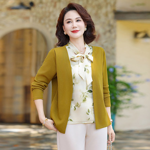 年轻妈妈装上衣秋季衬衫印花翻领气质大码中老年女装假两件小衫