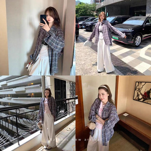 Xzichic 7.28/20点 宽松格子衬衫女夏季轻薄衬衣长袖防晒外套上衣
