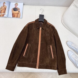 25早秋新款美拉德甜酷少女复古撞色拼皮包边麂皮绒夹克外套