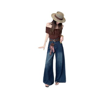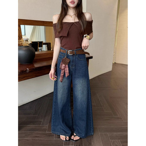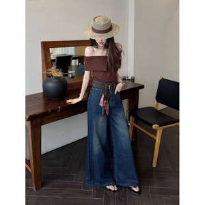 大阔腿牛仔裤女高腰垂感2025早秋新款宽松显瘦遮胯百搭直筒拖地裤