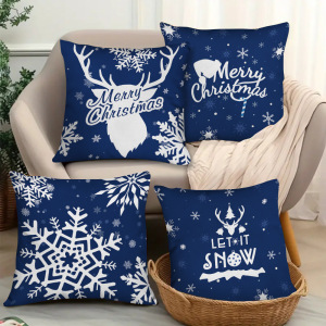 亚马逊希音TEMU跨境圣诞节抱枕套蓝色系列客厅沙发靠垫套装饰家居