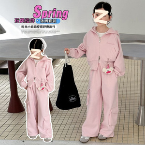 女童韩版秋装工装运动套装2025新款中大童拉链外套直筒裤两件套潮