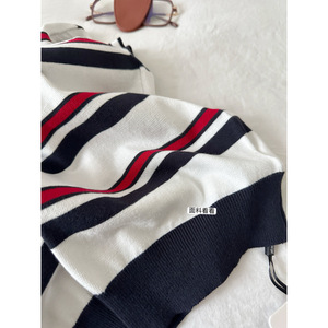 2025新款miu系针织条纹polo衫短袖T恤女正肩翻领短款上衣