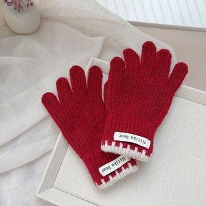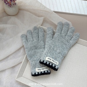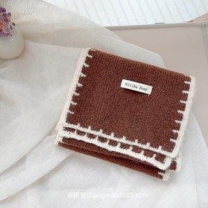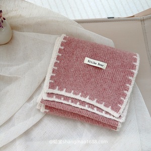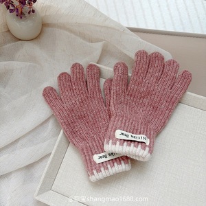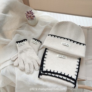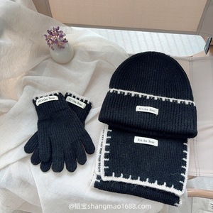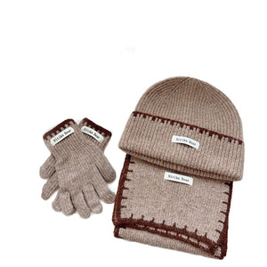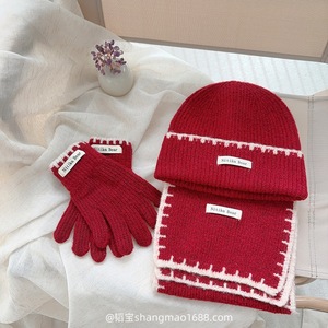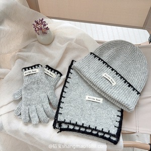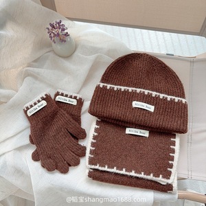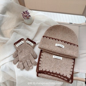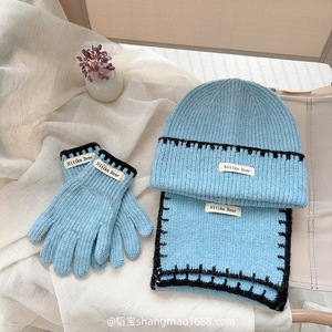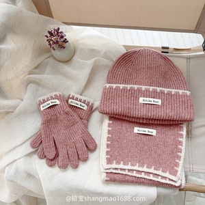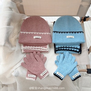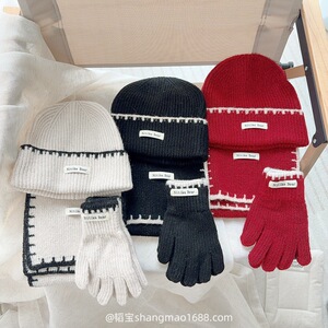 韩版儿童3件套洋气针织百搭拼色围巾宝宝毛线套头帽分指手套冬季