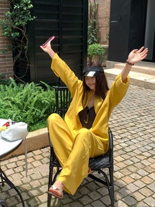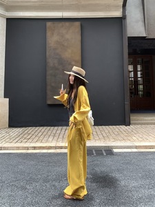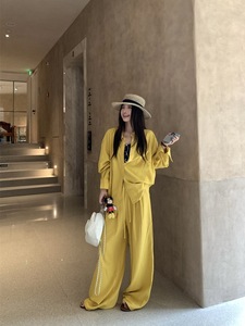 慵懒风黄色单排扣长袖衬衫女2025新款秋季显瘦休闲裤长裤两件套