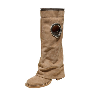 甜酷靴子长筒靴女2025新款洞口设计时装靴复古粗跟骑士长靴辣妹