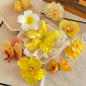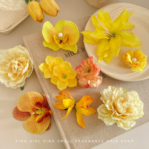 法式田园风黄色花朵头饰发夹女夏日刘海簪花发卡氛围感头花侧边夹