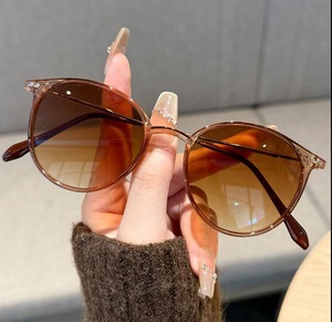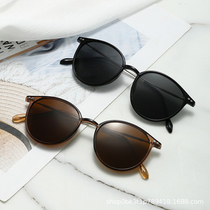 新款时尚小圆框墨镜高级感复古港风太阳镜女厂家批发经典米钉眼镜