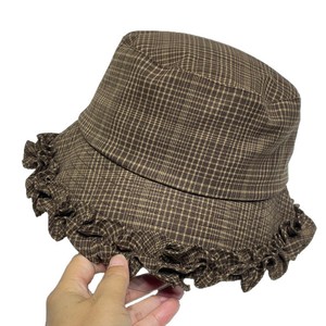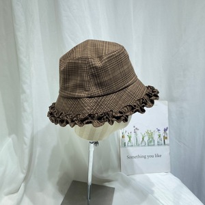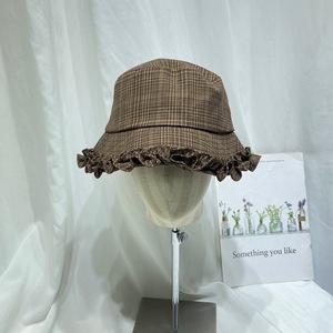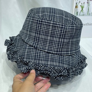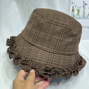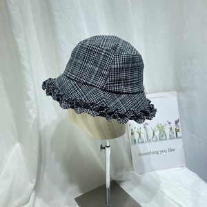 韩国甜美花边格子渔夫帽女早秋复古时尚休闲盆帽显脸小防晒遮阳帽