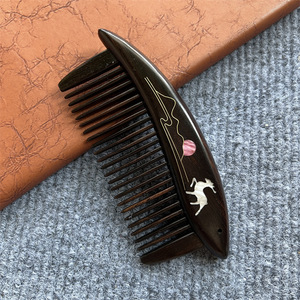 紫光檀插齿檀木半月梳非遗螺细工艺彩贝镶嵌檀木梳文创礼品木梳礼