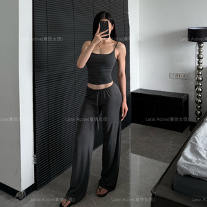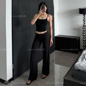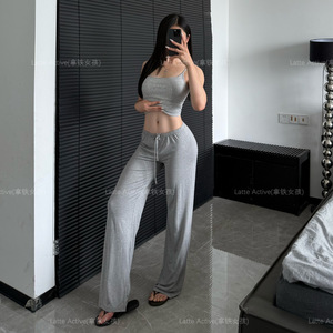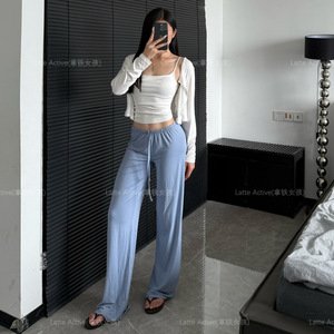 跨境薄款显瘦休闲裤宽松直筒阔腿裤健身裤长裤抽绳运动日韩休闲
