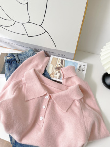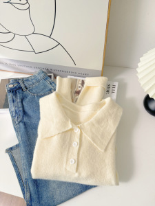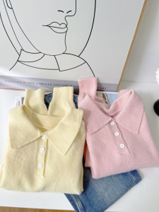 圣诞款法式复古软糯小鸡黄色针织衫毛衣女2025春新款翻领毛衫6097