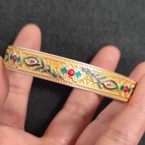 新中式凤羽心经手镯女描金民族风珐琅彩轻奢小众重工实心凤凰手镯