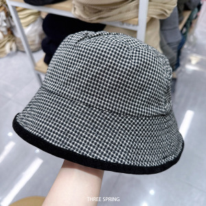批发韩国2025年早秋新款锁边格纹双面可戴渔夫帽日系遮阳防晒盆帽