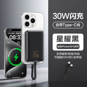 品胜磁吸充电宝30W快充自带线10000毫安迷你便携商务礼品移动电源