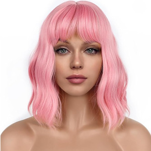 女士空气刘海短波浪卷发 水波纹齐肩波波头假发