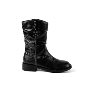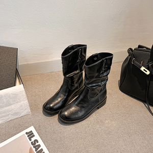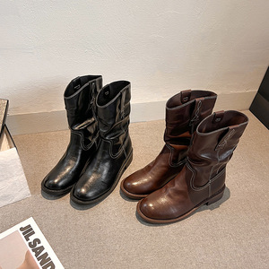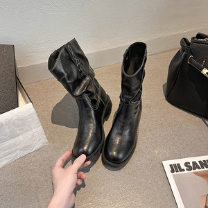羊皮版真皮复古风粗跟西部牛仔靴女2025新款休闲粗高跟百搭马丁靴