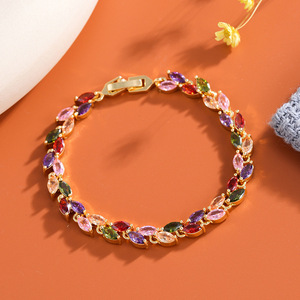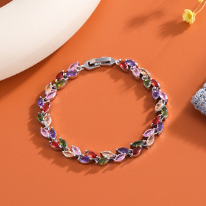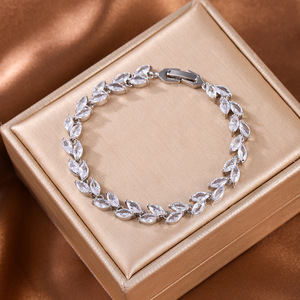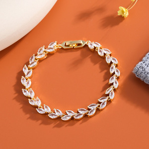 新款欧美跨境亚马逊镶满钻叶子锆石手链简约创意奢华镶钻手链批发