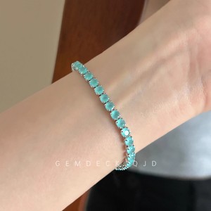 夏日清凉感湖蓝色排钻手链高级感气质轻奢手环韩系冷淡风小众首饰