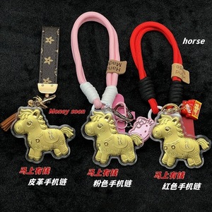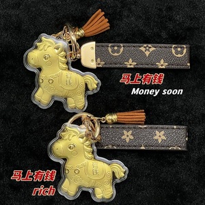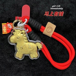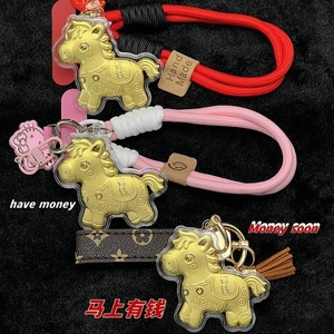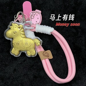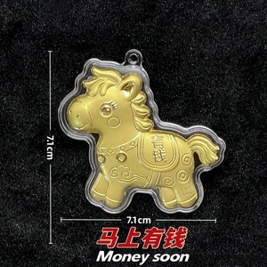 足金999马上有钱钥匙扣卡通生肖小马挂件商务送礼手机链饰品礼物