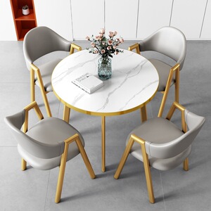 浅灰色4布椅+80CM金+仿白大理石圆桌
