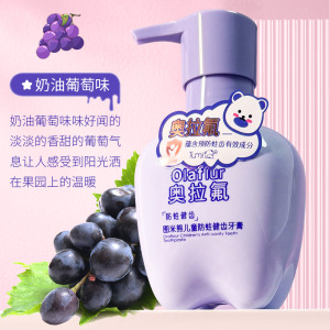 爆款奥拉氟儿童牙膏防蛀2-3-6-12岁换牙期小孩含氟宝宝健齿按压式