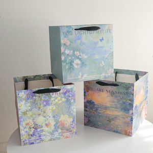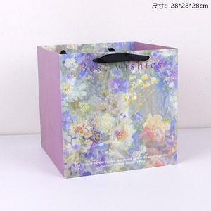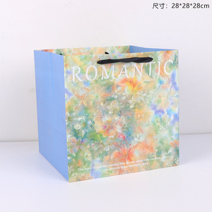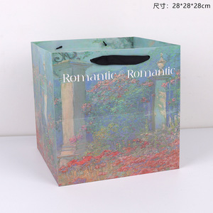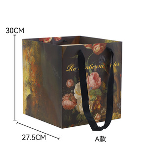卓兰鲜花手提袋油画风手拎袋加厚大尺寸纸袋花束打包手工diy材料