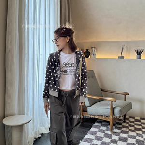 2025秋季aeae韩国ins风百搭休闲波点短款外套帽衫双头拉链宽松