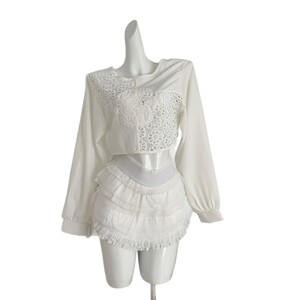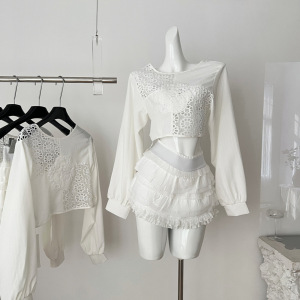 2025秋季新款 小香风镂空露背设计气质短上衣短裙两件套女秋