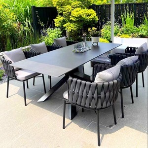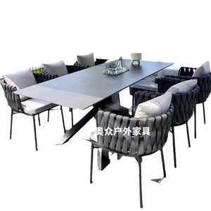 户外庭院桌椅别墅花园室外露台茶桌藤编家具休闲高端岩板餐桌藤椅