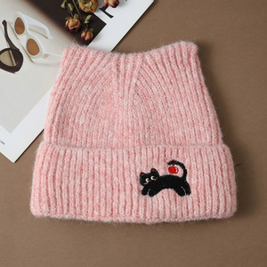 韩版秋冬季帽子女款毛线针织帽显脸小包头帽百搭可爱猫耳保暖冷帽