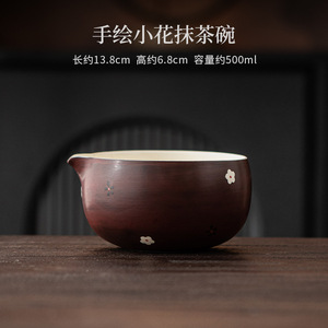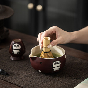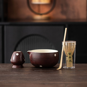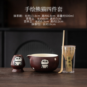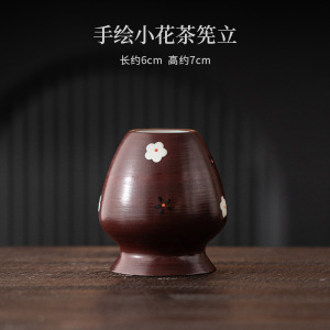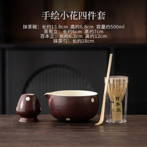 山楂红手绘陶瓷抹茶四件套点茶碗茶筅立百本立打沫搅拌器茶道配件