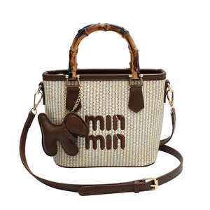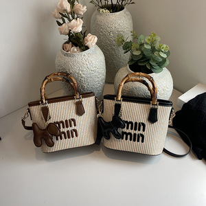 跨境竹节手提包包女2025新款沙滩单肩包时尚百搭通勤编织斜挎包女