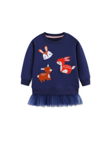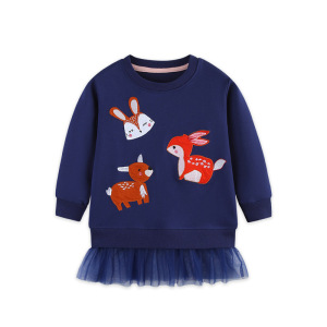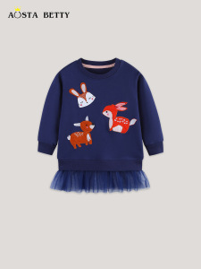 25秋季新款女童卫衣可爱动物刺绣儿童套头衫网纱中小童长袖运动衫