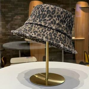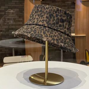 2025新款美式复古豹纹渔夫帽女春夏季显脸小盆帽做旧遮阳帽子辣妹