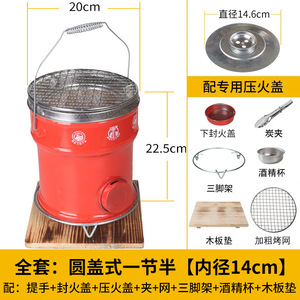 圆盖式红一节半【内径14cm】+盖+夹+网+架 建议烧炭