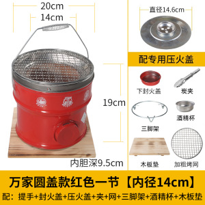 圆盖式红一节【内径14cm】+盖+夹+网+架 建议烧炭