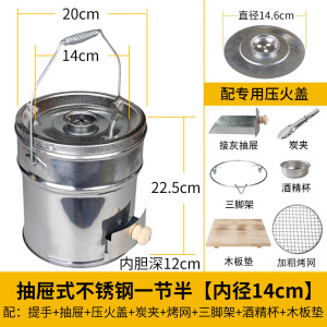 抽屉式钢一节【内径14cm】+盖+夹+网+架 建议烧炭