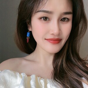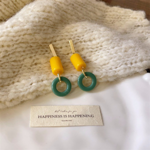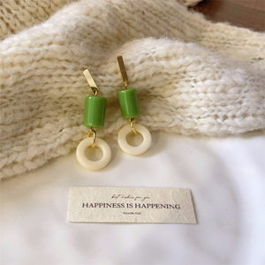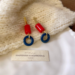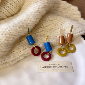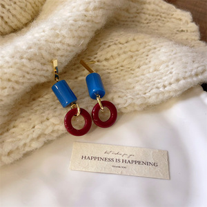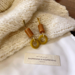 韩版秋冬新款撞色圈圈长耳环复古气质简约美拉德色通勤减龄耳饰品