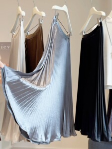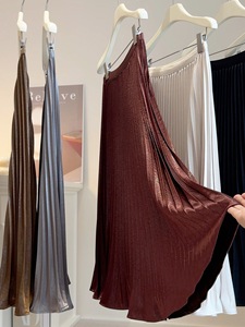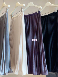 流光半身裙新款女2025秋高级感缎面气质中长款垂感显瘦a字百褶裙