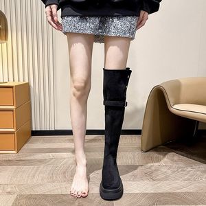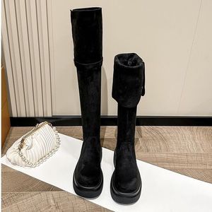 两穿烟筒翻折过膝长靴夏季小个子长筒靴女厚底增高瘦瘦骑士靴
