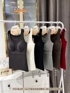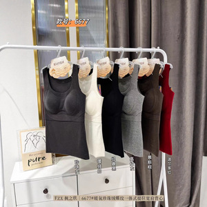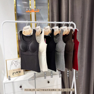 枫之欣6677暖氧珍珠绒螺纹经典纯色一体式提拉宽肩背心抗菌百搭