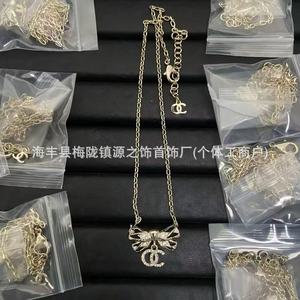 香奶奶对版双C满钻蝴蝶结项链女甜美镶钻感锁骨链批发2025新款