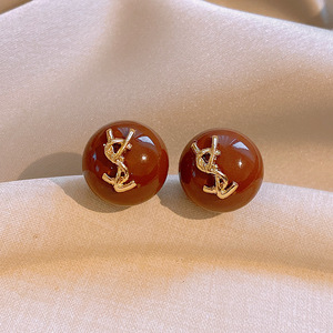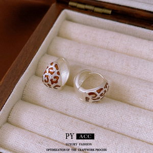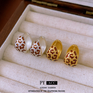 欧美复古风豹纹圆球耳扣轻奢高级感个性耳环精致简约气质耳饰批发