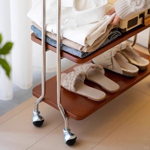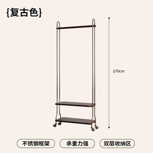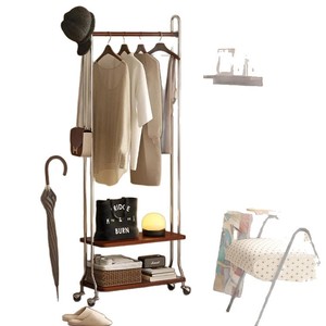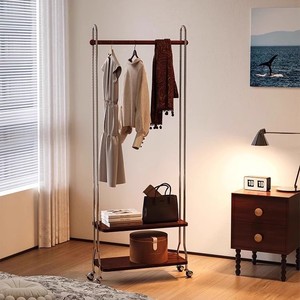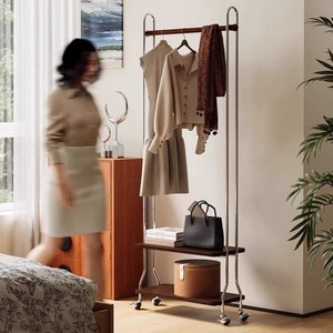 中古奶油风实木衣帽架落地铁艺卧室家用挂衣小型可移动置物收纳架