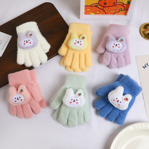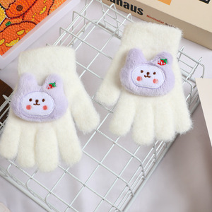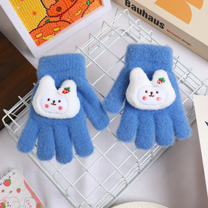 2.-9岁冬季儿童可爱卡通兔手套保暖防寒防风水晶貂绒五指针织手套